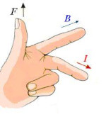 Il verso della forza si stabilisce con la regola mnemonica della mano sinistra, dove si tengono pollice, indice e medio in posizione perpendicolare tra loro e orientati secondo i versi rispettivamente della forza, dell'induzione e della corrente.