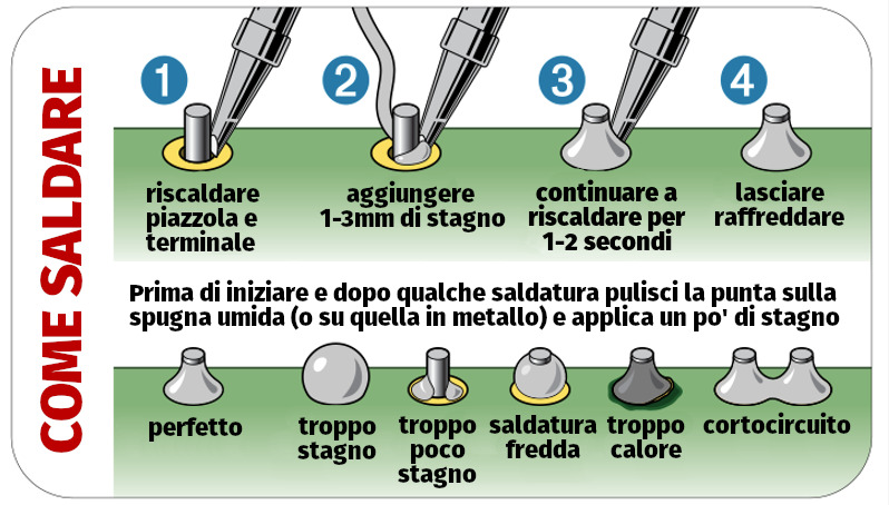 - il saldatore deve essere efficiente, pulito e ben caldo